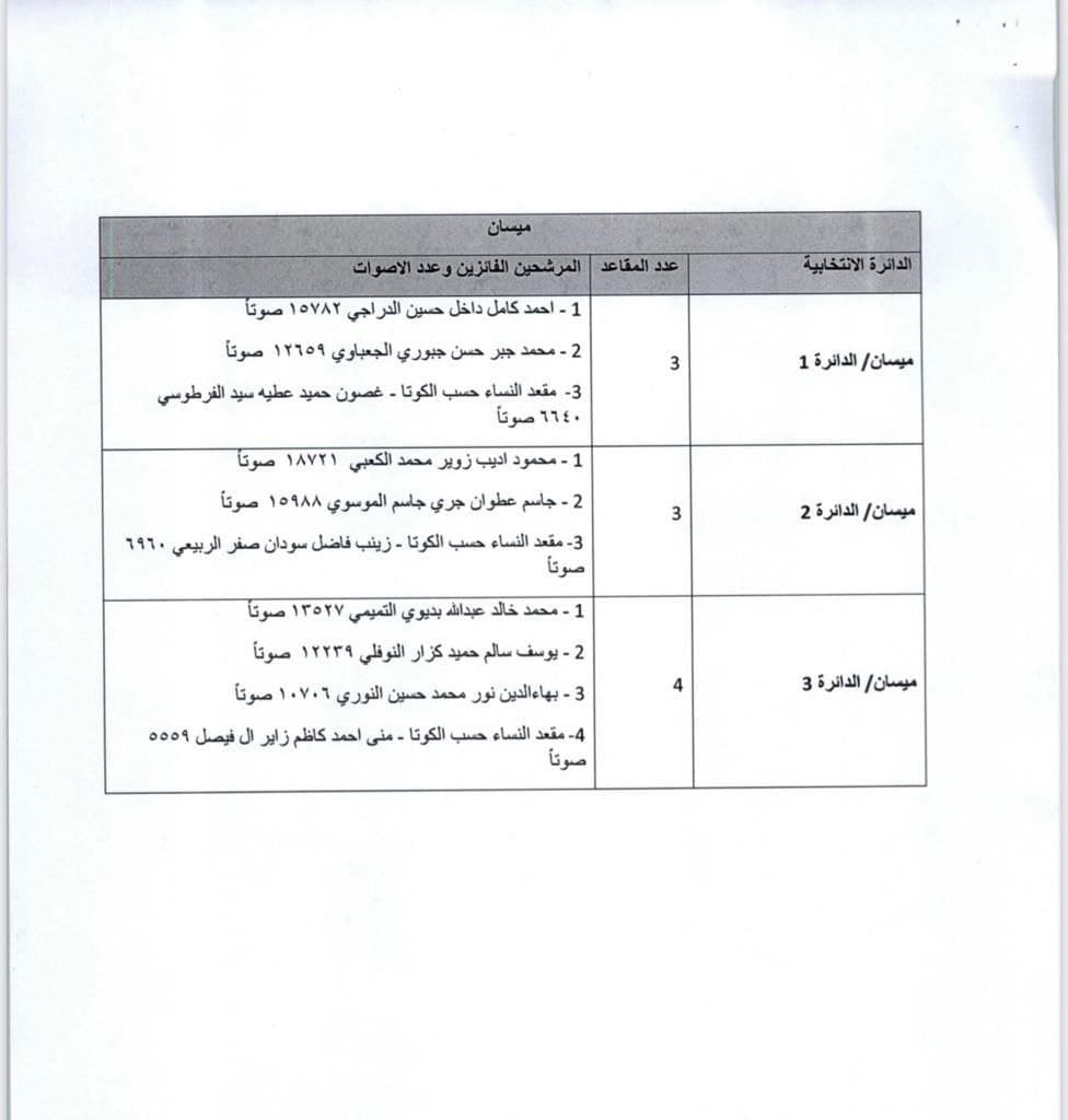 أسماء النواب الفائزين في الانتخابات النيابية عن محافظة ميسان