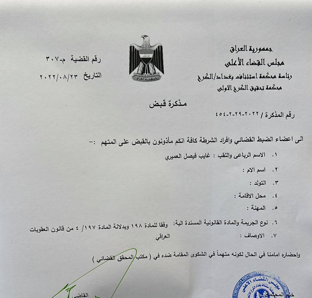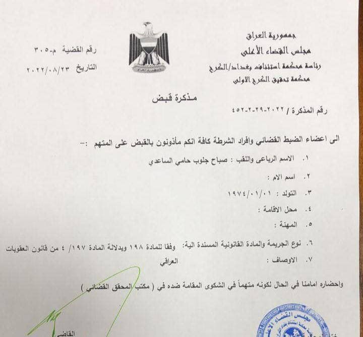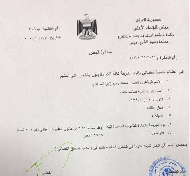 بالوثائق .. مذكرات القاء القبض التي صدرت بحق عدد من الشخصيات التي هددت القضاء