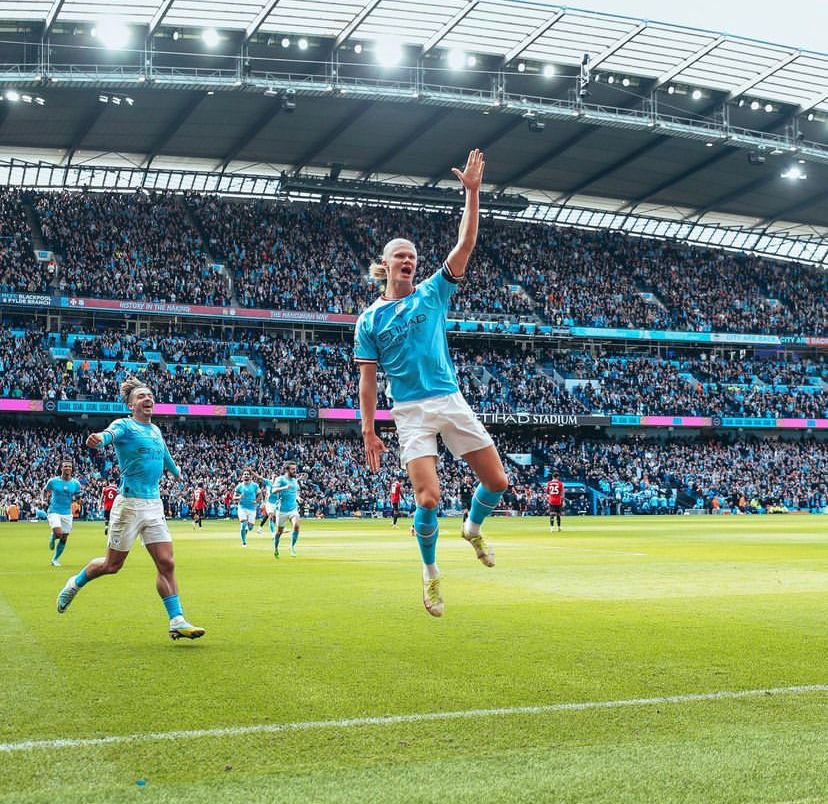 ووقع على سداسية السيتي فيل فودين بالهاتريك في الدقائق (8- 44- 73) وهاتريك آخر لإيرلنج هالاند في الدقائق (34- 37- 64)، بينما سجل ثلاثية مانشستر يونايتد أنتوني في الدقيقة (56) وأنتوني مارسيال في الدقيقتين (84- 90).