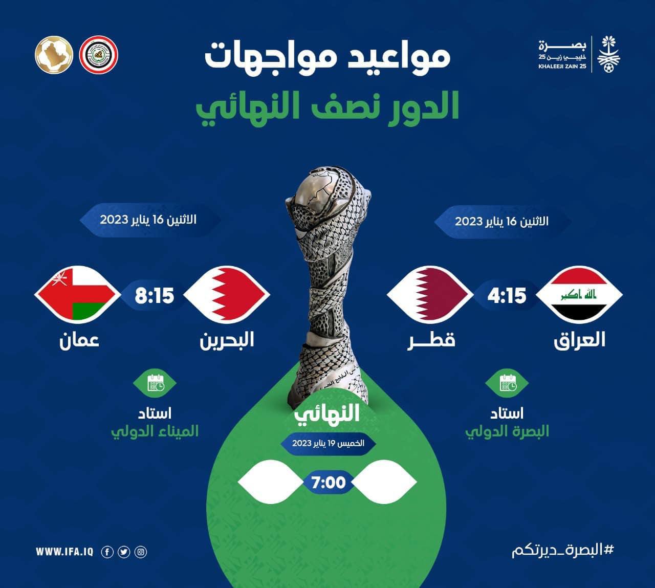 موعد مباريات نصف نهائي بطولة خليجي 25