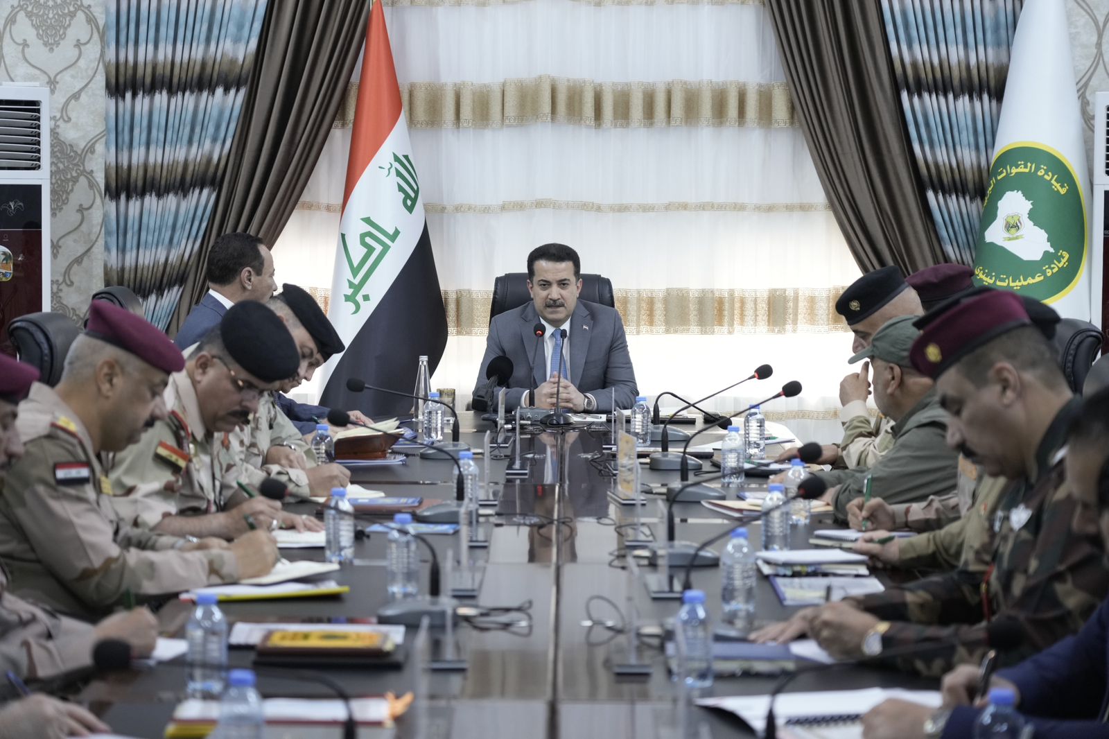 وذكر المكتب الإعلامي لرئيس مجلس الوزراء، في بيان، أن "رئيس مجلس الوزراء، القائد العام للقوات المسلحة محمد شياع السوداني، ترأس اجتماعاً أمنياً، في مقرّ العمليات المشتركة بمحافظة نينوى، ضمّ رئيس أركان الجيش، وقائد عمليات نينوى، ومسؤولي الأجهزة الأمنية المختلفة في المحافظة، وذلك بحضور المحافظ".