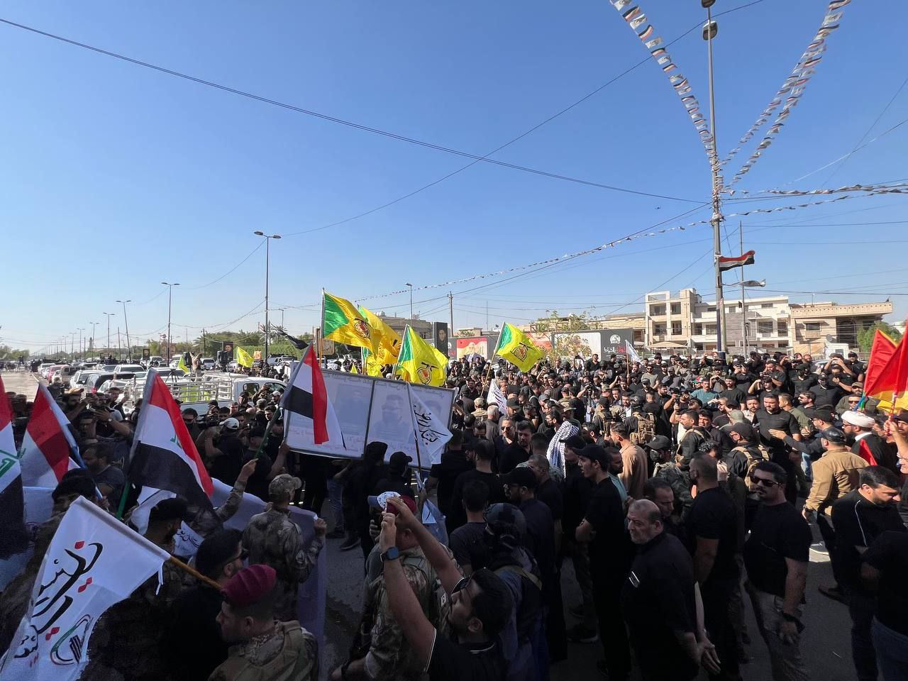 بدأت في منطقة شارع فلسطين شرقي العاصمة بغداد، اليوم الاربعاء، مراسم تشييع جثامين شهداء الحشد الشعبي الذين ارتقوا اثر عدوان غادر على قاطع جرف النصر شمال محافظة بابل.