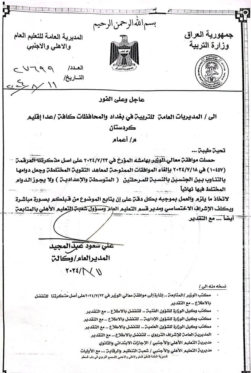 وزارة التربية: لا يجوز الدوام المختلط نهائياً في معاهد التقوية