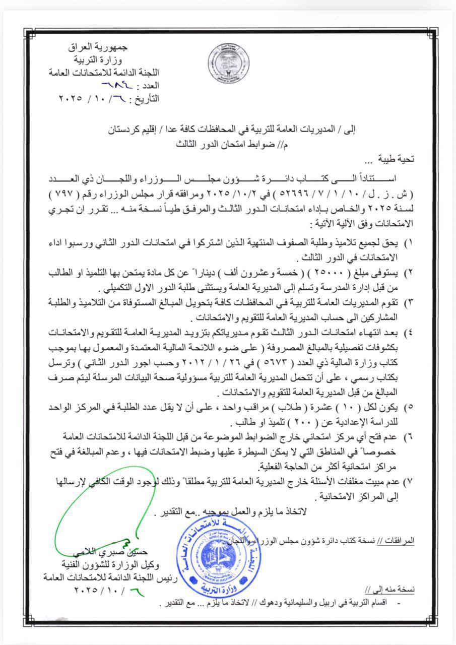 وزارة التربية تصدر ضوابط وآلية اداء امتحانات الدور الثالث للمراحل الدراسية المنتهية