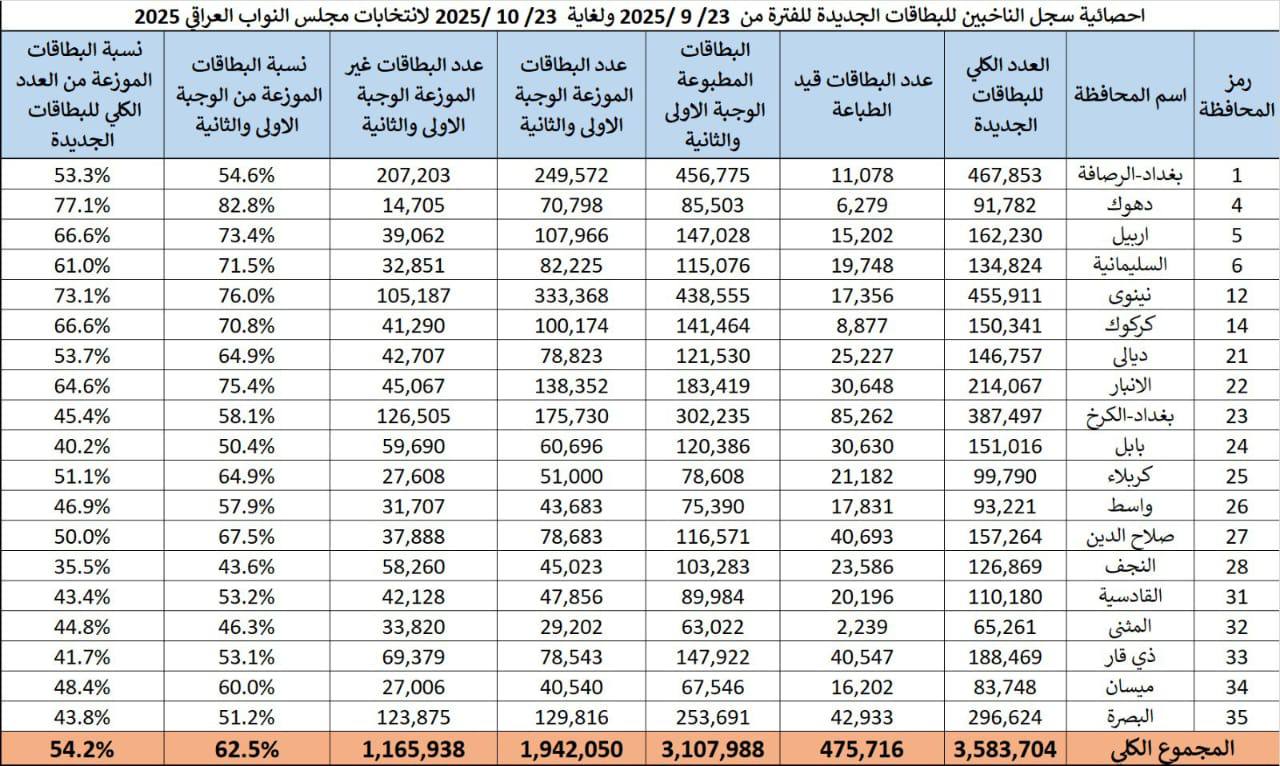 مفوضية الانتخابات تصدر إحصائية شهرية لتوزيع البطاقات البايومترية على الناخبين