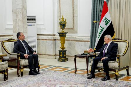 استقبل رئيس الجمهورية عبد اللطيف رشيد في قصر بغداد وزير الشباب والرياضة الدكتور أحمد المبر ...