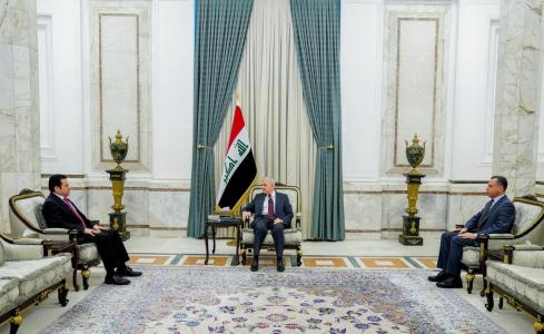بحث رئيس الجمهورية عبد اللطيف جمال رشيد مع مستشار الأمن القومي قاسم الأعرجي، ورئيس جهاز ال ...