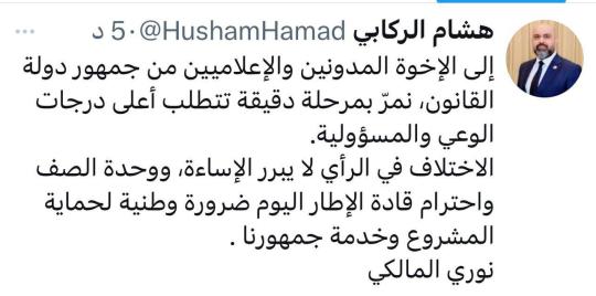 الركابي: إلى الإخوة المدونين والإعلاميين من جمهور دولة القانون نمر بمرحلة دقيقة تتطلب ...